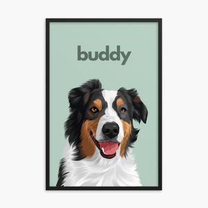Our custom pet portraits are crafted to be both beautiful and enduring, delivered in ready-to-hang wooden frames that are sturdy and durable. Each portrait is printed on our premium heavier-weight white matte paper, offering a natural, smooth uncoated finish that exudes luxury.